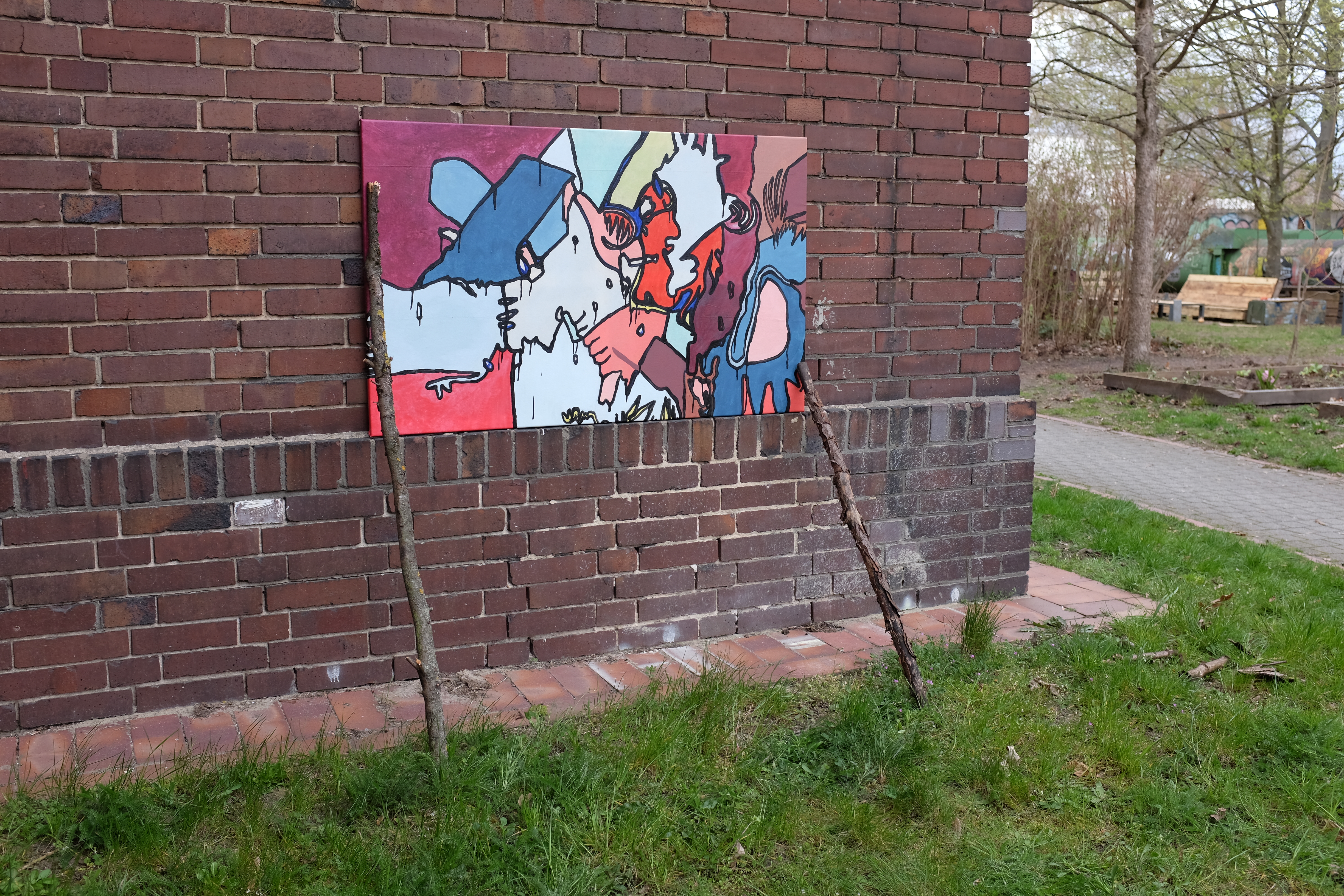 It is a series of paintings that are similar in style. They differ in their colour, which varies in intensity. Non architect is a work exploring colour and composition while listening techno music.